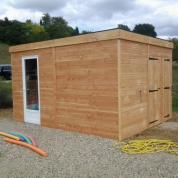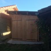 Abri avec bûcher double pente.Couverture en PST (plaques sous tuiles).Inclus à l'abri un volet pour la fenêtre et une porte deux ventaux.Réalisation dans l'ouest...