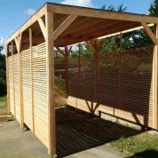 Structure toit plat pour abriter un camping-car dont 3 côtés sont composés de claires voies.Réalisation aux alentours de Colomiers (31).