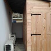 Abri mono pente qui a sû parfaitement trouver sa place malgré la contrainte des groupes extérieurs.Couverture en PST (plaques sous tuiles).Réalisation proche de Saint... Lire la suite