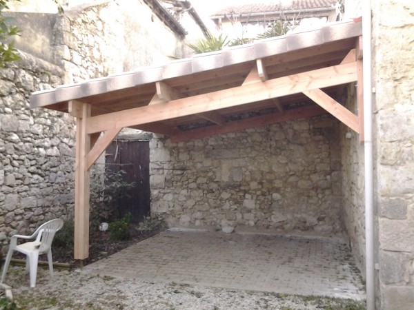 Places de stationnement couvertes pour deux voiture.Structure Douglas en deux pentes adossée à la maison d'habitation. Accroches sur la maison grâce à deux... Lire la suiteZac Barraillol